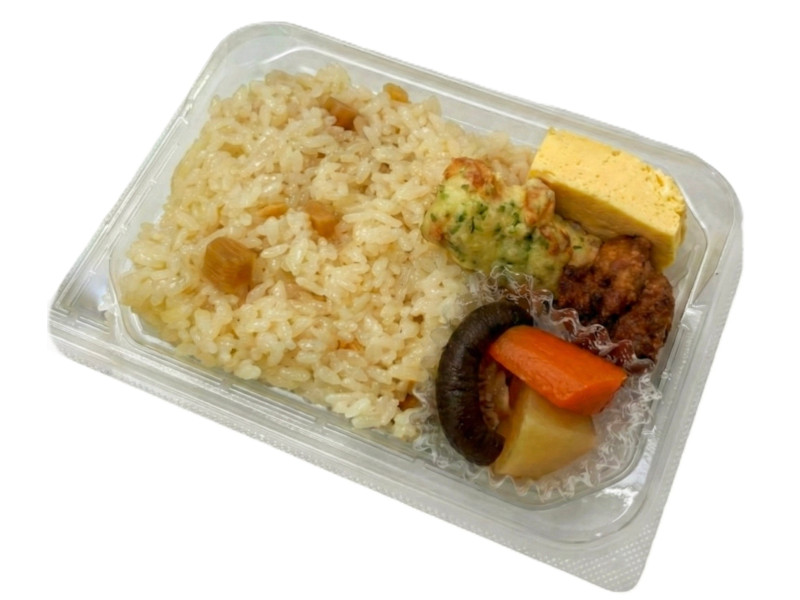 季たけのこを混ぜ込んだだしご飯に、煮物・揚物・焼き物をバランス良く合わせました。
