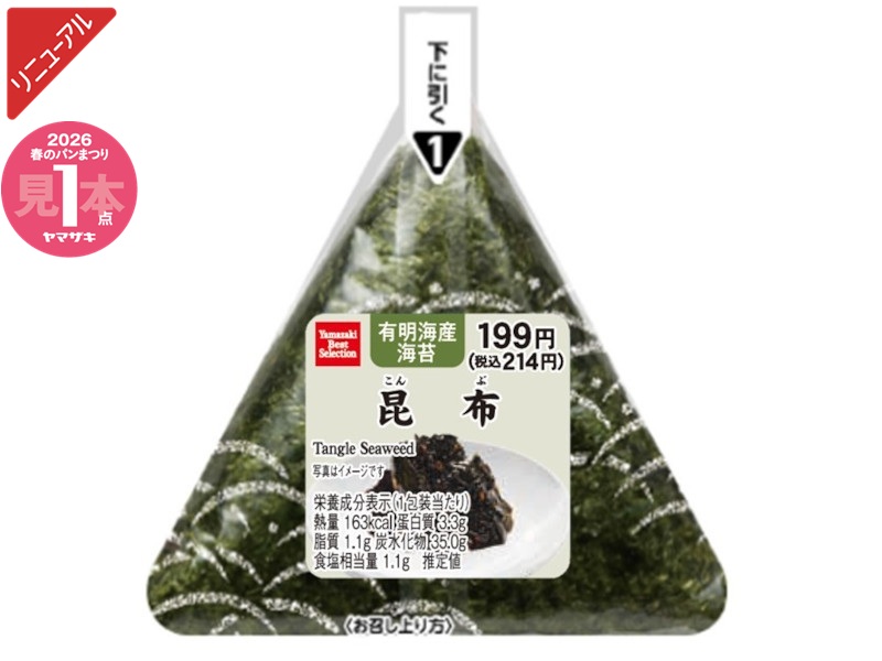 ご飯が進むよう醤油・砂糖・みりん等で甘辛く煮込んだ昆布の佃煮を、中に入れました。※「ヤマザキ春のパンまつり」対象商品です。