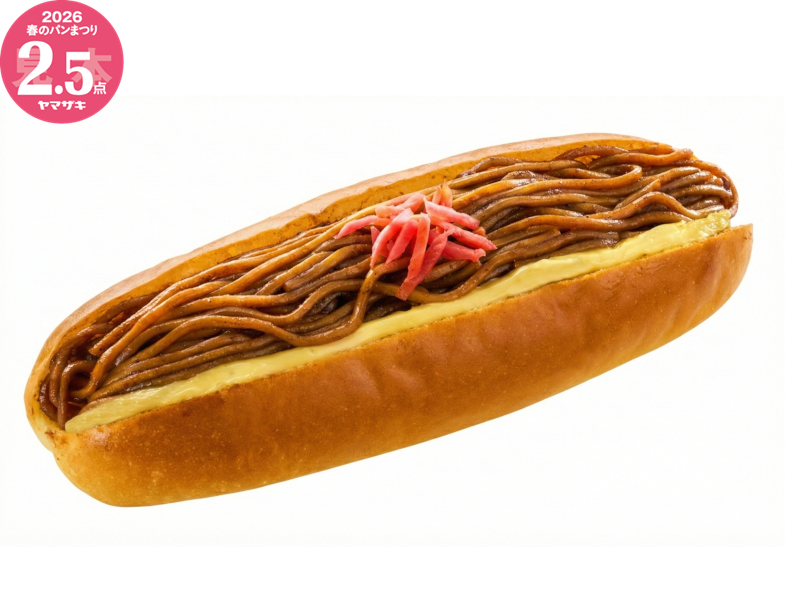 ソースで濃く味付けした揚げ玉入りの焼きそばとキャベツフィリング、からし入りドレッシングをロールパンにサンドしました。※「ヤマザキ春のパンまつり」対象商品です。