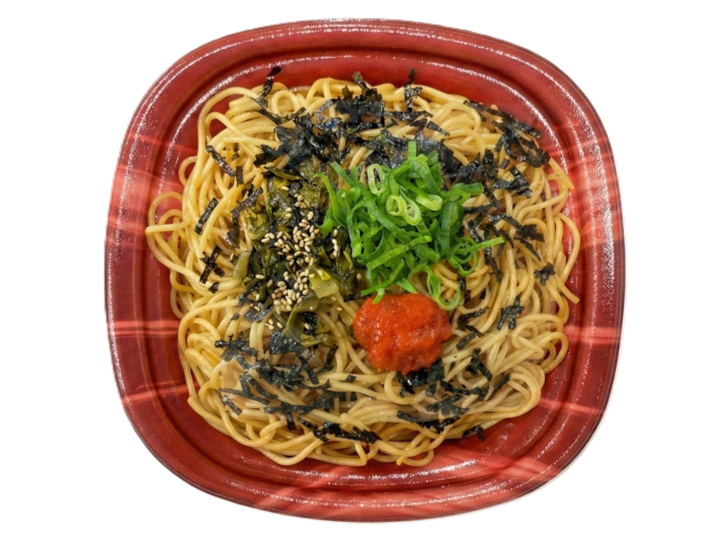 博多明太子と食感も楽しめる高菜を組み合わせたスパゲティです。おだしの風味豊かなスープ入りです。
