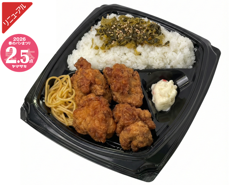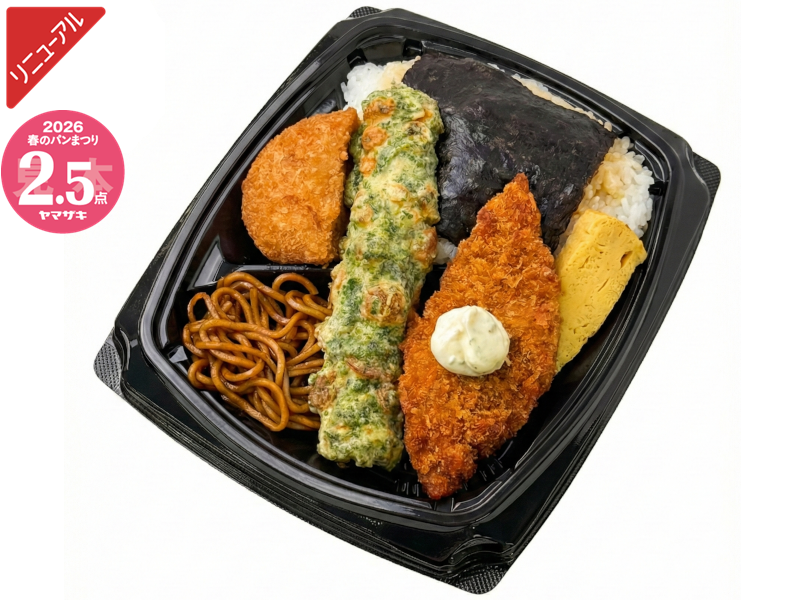 白身フライ・ちくわ磯辺揚など、定番おかずを味わえるお弁当です。※「ヤマザキ春のパンまつり」対象商品です。