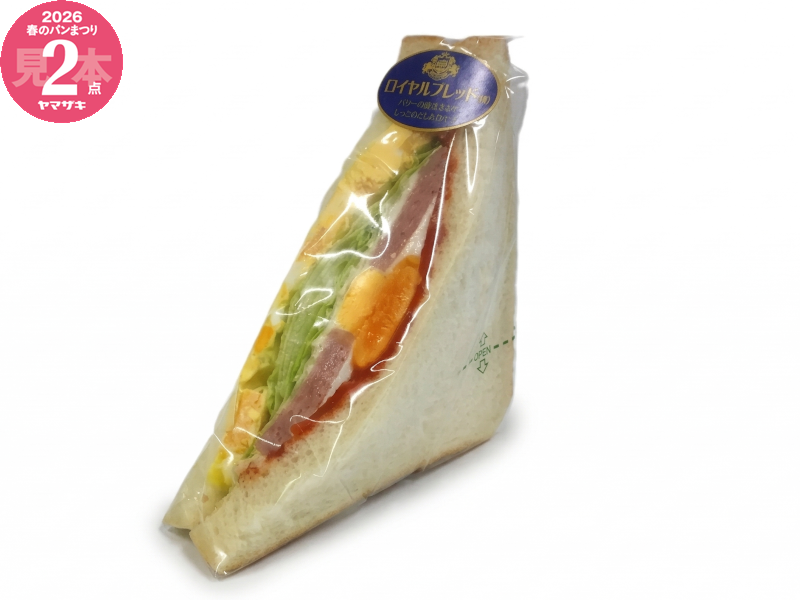 タマゴフィリング、目玉焼き、ボロニアソーセージ、レタスにケチャップと粒からしマヨネーズを組み合わせたサンドイッチです。※ボロニアソーセージは、小麦、卵、牛肉、鶏肉、りんご、ゼラチンを含む他の製品と共通の設備で製造しています。