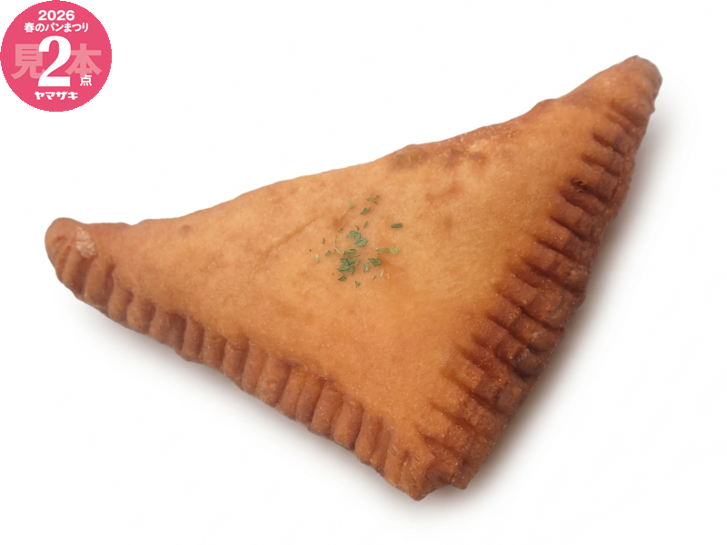 ルヴァン種を配合したもっちりとした生地でトマトミートフィリングとチーズフィリングを絞って揚げた三角形のドーナツです。