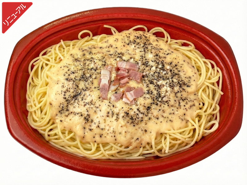 醤油の風味が香る和風仕立てのペペロンチーノです。キャベツやベーコンを盛付け、食べ応えのあるパスタにしました。※東北・九州での販売はありません。