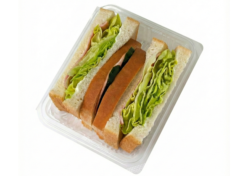 ロイヤルブレッドを使用した新形態のサンドイッチ。ボリュームのある山型の食パンで、レタス・ハム・きゅうりをサンドしました。※秋田・青森での販売はありません