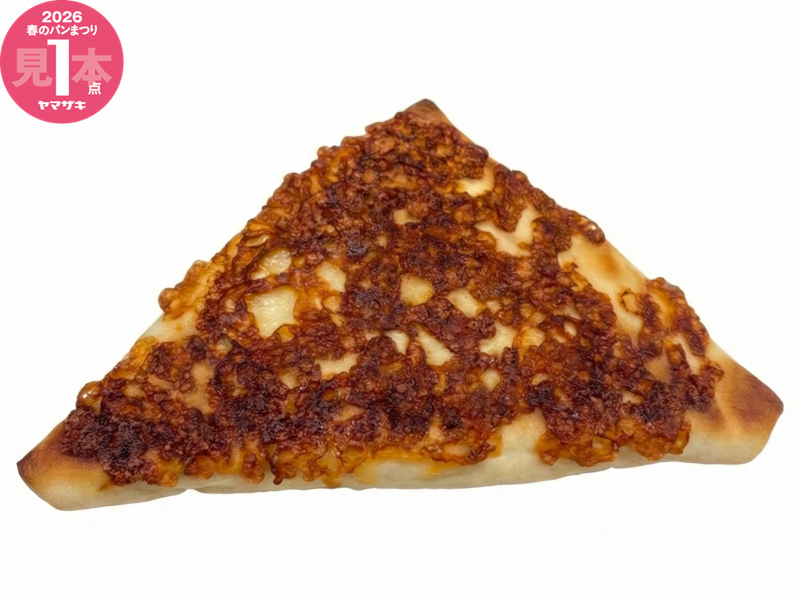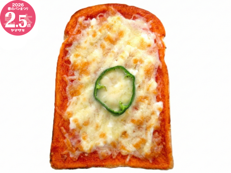 ロイヤルブレッドにケチャップを塗り、玉ねぎスライス、ペパロニスライス、ベーコンスライス、たっぷりチーズをのせて焼き上げました。※ペパロニスライスはエビやカニ、小麦、卵、乳成分を含む原料を使用した設備で生産しています。※ベーコンスライスは小麦、牛肉、鶏肉、りんご、ゼラチンを含む他の製品と共通の設備で製造しています。