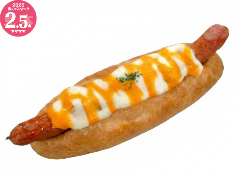 セミフランスパンにシャウエッセン®をサンドし、4種のチーズ(ゴーダチーズ、クリームチーズ、カマンベールチーズパウダー、ラクレットチーズ)を使用したコクのあるチーズフィリングとチェダーチーズソースをトッピングして焼き上げたチーズづくしのホットドッグです。※ソーセージの製造工場では、卵、乳成分、小麦を含む製品を製造しています。