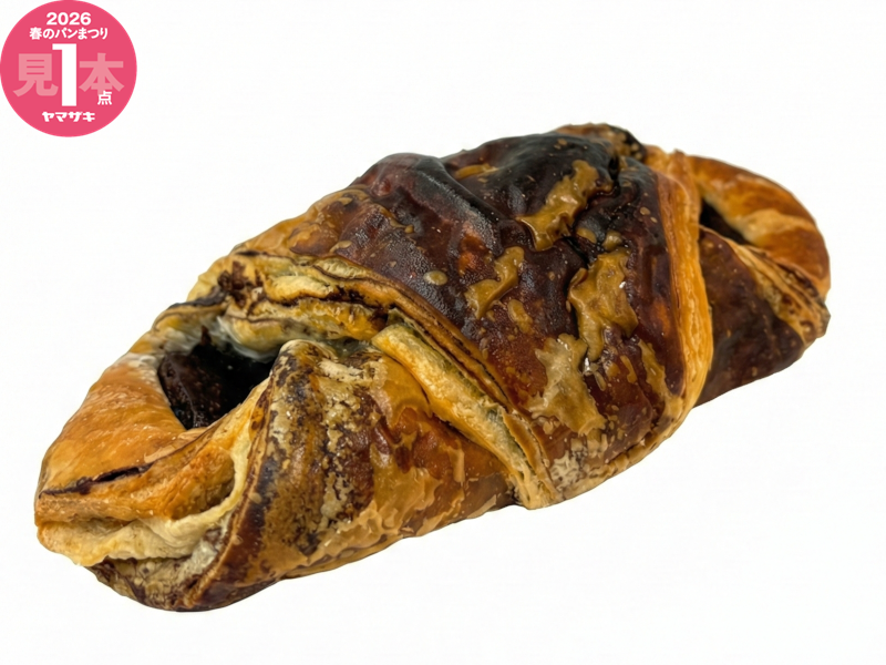 デニッシュ生地でココアビスケット入りのチョコクリームとスティックチョコを挟み、ザクザクとした食感のデニッシュ生地を巻き、焼き上げました。