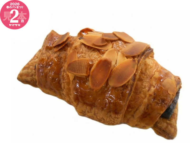 サクサクとしたクロワッサン生地で板チョコを巻いて焼き上げました。※アーモンドの製造工場では、くるみ・カシューナッツ・マカダミアナッツと製造を共有しています。