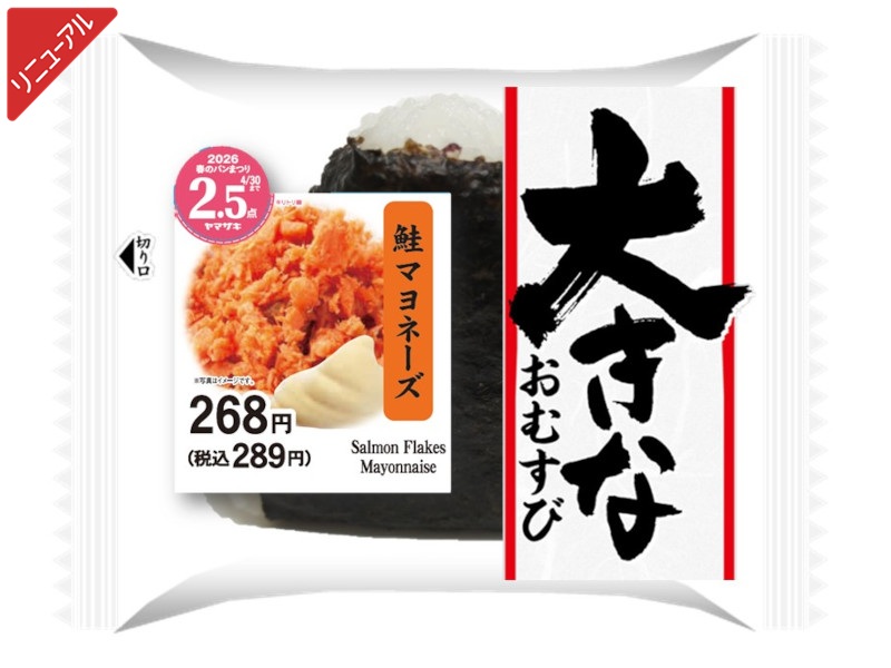 香ばしく焼き上げて丁寧にほぐした紅鮭を中に入れました。鮭の程よい塩気がご飯によく合います。※「ヤマザキ春のパンまつり」対象商品です。