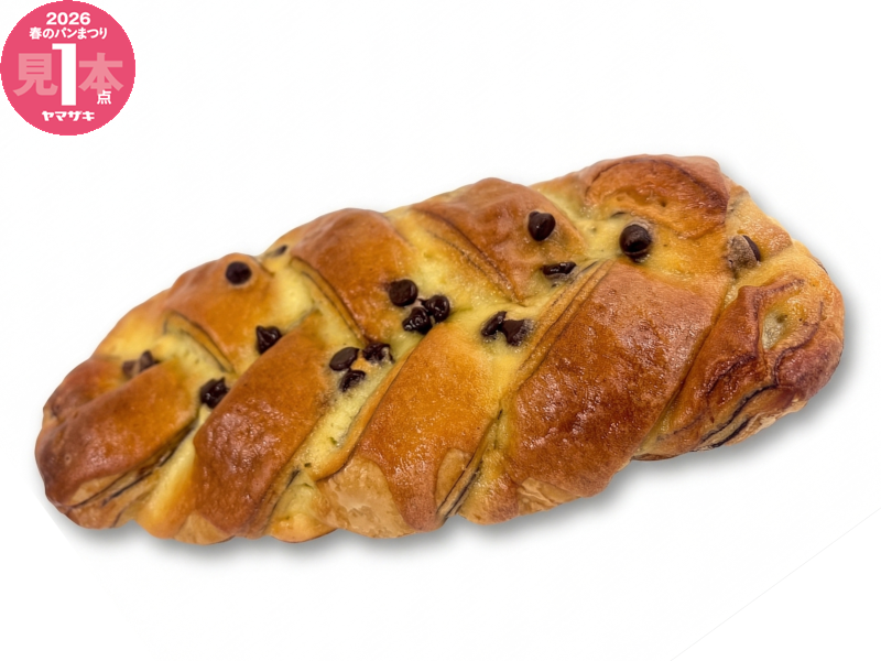 バター入りマーガリンを折り込んだデニッシュ生地にチョコクリームを包み、ビスケット生地を被せて焼き上げました。 ※「ヤマザキ春のパンまつり」対象商品です。