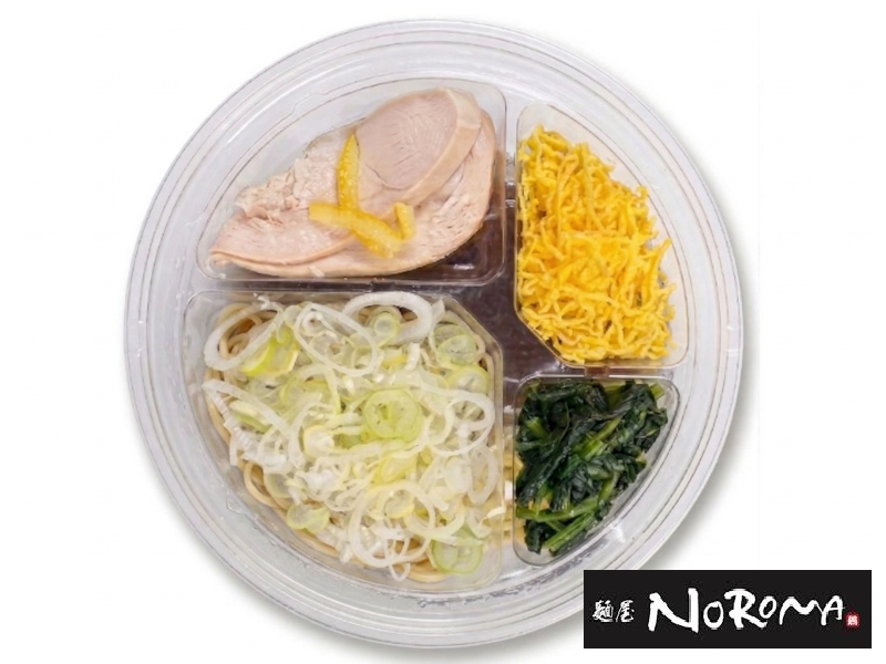 彩り良く盛り付けた生野菜に蒸し鶏・茹で玉子を加えた、ボリュームのあるサラダうどんです。※東北・九州での販売はありません。