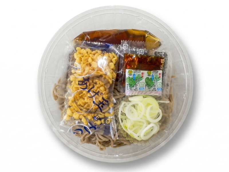 そばの実を石臼で挽いた風味のよいそば粉を使用。だしのきいた甘辛のそばつゆと合わせました。 ※東北地方での販売はありません。