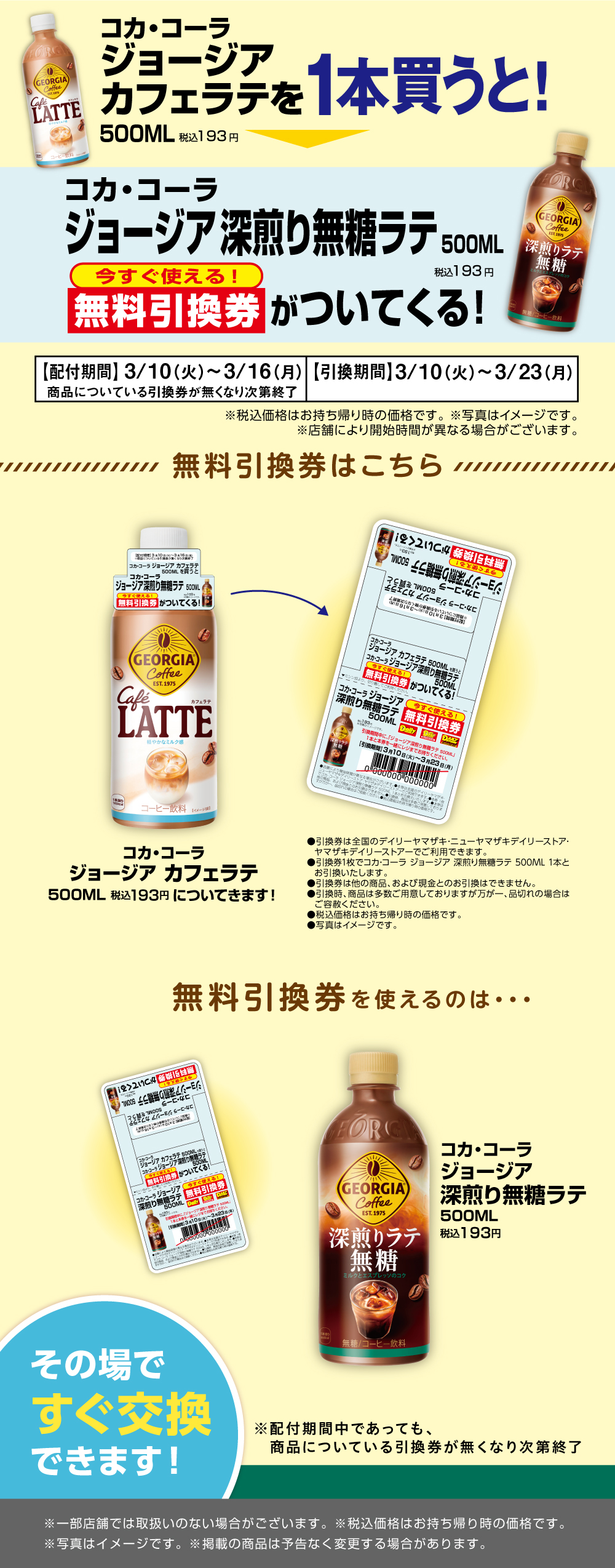 対象の飲料を買うと『ジョージア 深煎り無糖ラテ』がもらえる!