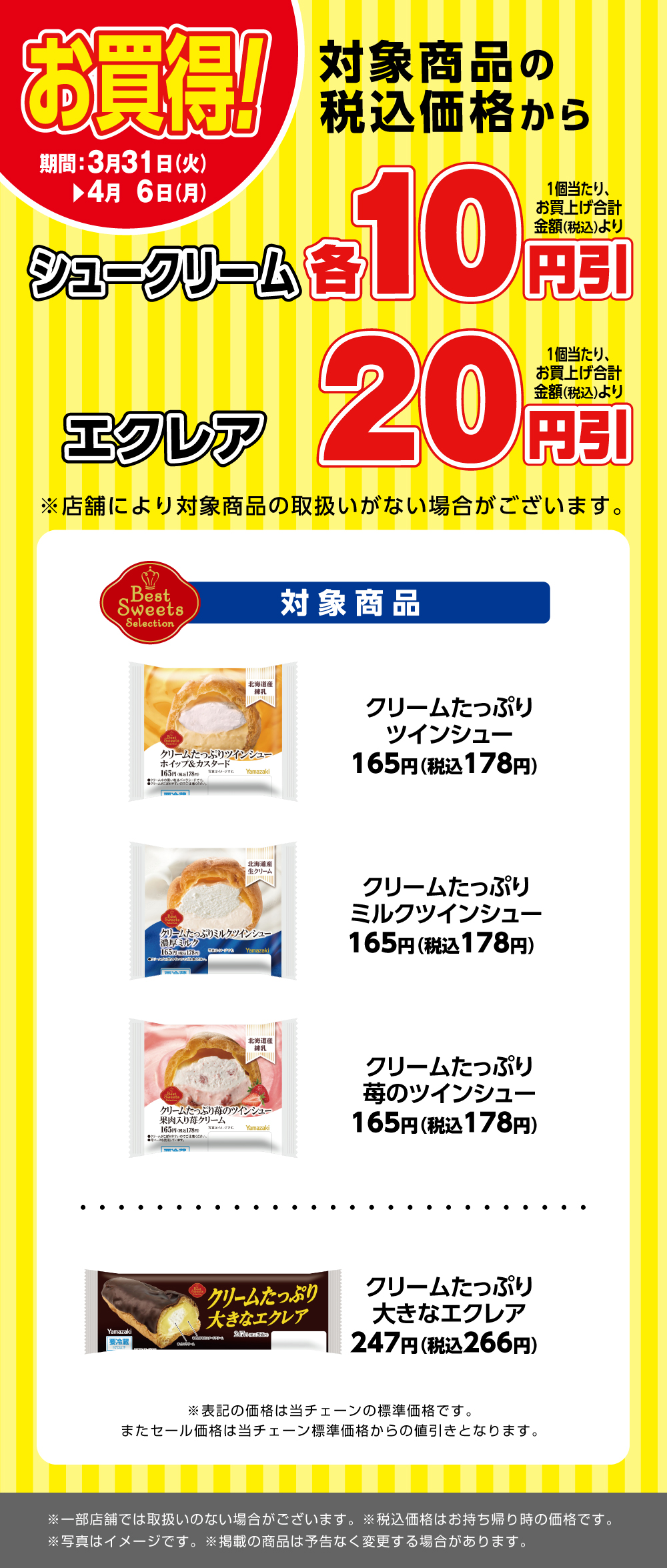 TOPおすすめ・キャンペーン情報対象のシュークリームやエクレアがお買得!