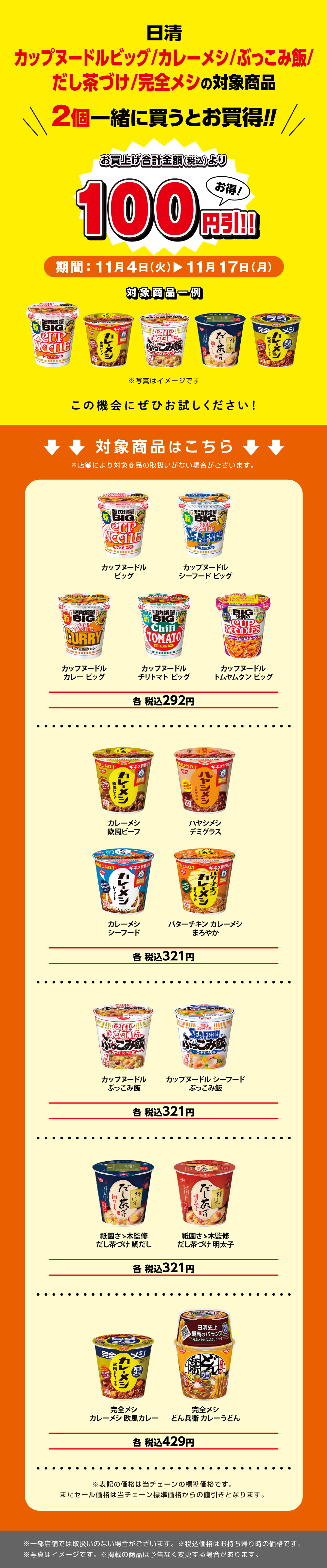 対象の日清『カップヌードル ビッグ』『カップライス』シリーズがお買得!