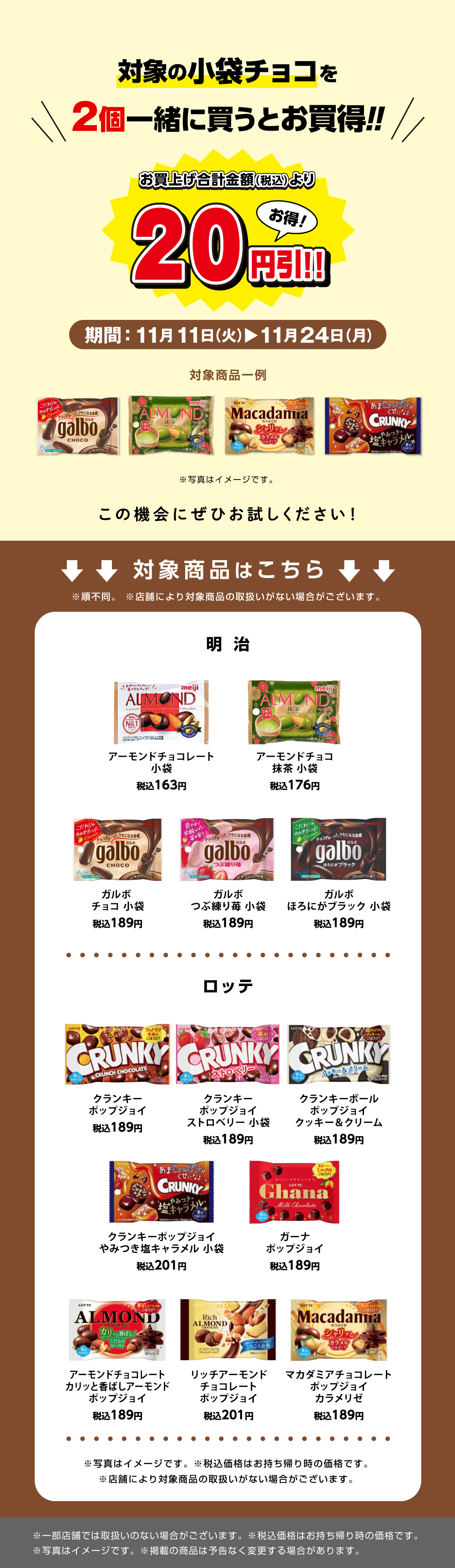 TOPおすすめ・キャンペーン情報対象の小袋チョコがお買得!