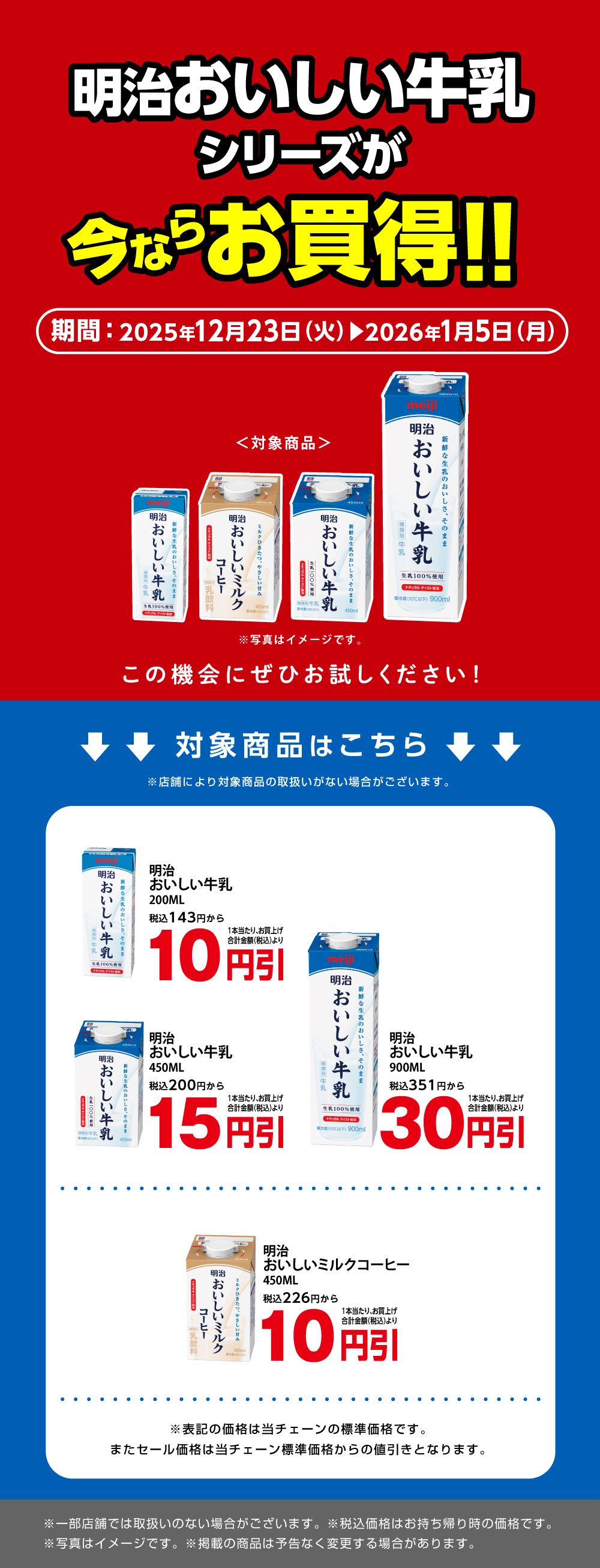 TOPおすすめ・キャンペーン情報明治おいしい牛乳シリーズがお買い得!