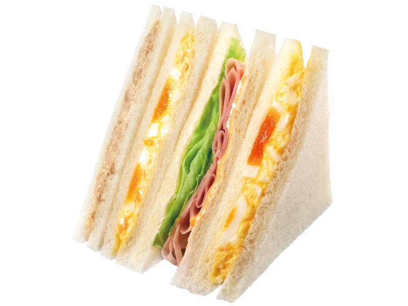 ハムとチーズ、たまごを使った4種類の異なる食感や味を楽しめるサンドイッチです。
