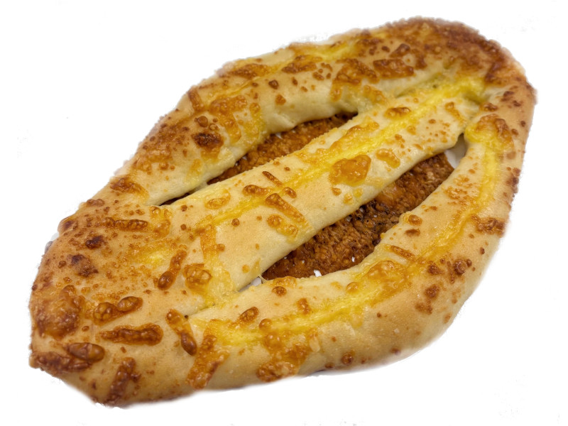 角切りチーズを練り込んだ生地にシュレッドチーズ、チーズソースをトッピングして焼き上げました。