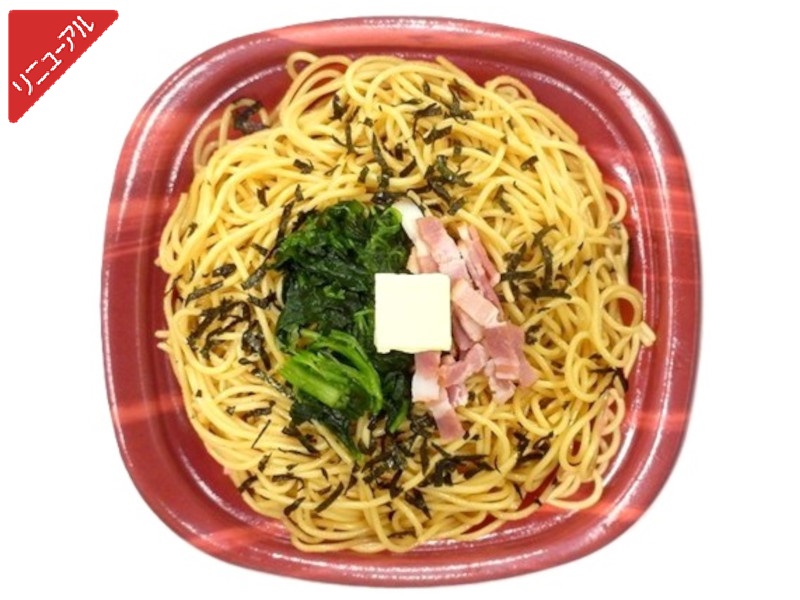 レンジ後に溶けるバターの風味が醤油味のスパゲィと合います。ほうれん草とベーコンはバター醤油スパゲティの人気の組合です。※東北・九州地方の販売はありません。