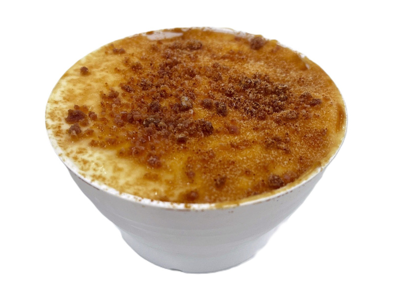 ケーキクラムの上にリンゴダイスととろける食感のカスタードムースを絞り、表面をブリュレ風に仕上げた秋向けカップスイーツです。