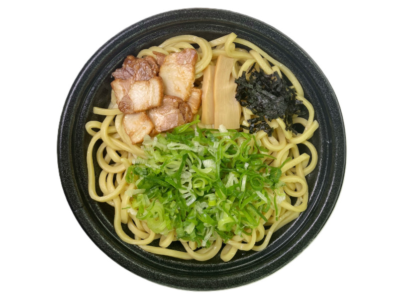 香ばしい直火焼炙り焼豚と刻み青ねぎをたっぷり入れた油そばです。醤油のキレのあるたれで混ぜ合わせ、別添のラー油で味変が楽しめます。※東北・九州地方の販売はありません。