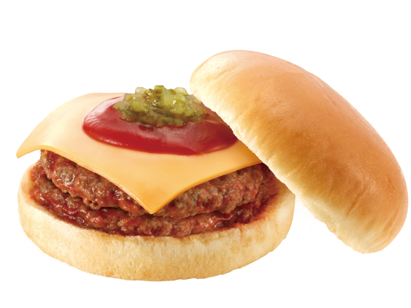 バンズ・スライスチーズ・チーズソース・ピクルスはそのままに、よりふっくら柔らかい食感のパティになりました。