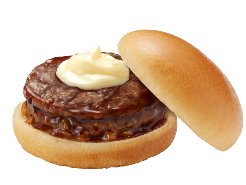 バンズにチーズソースと粒野菜入りのトマトソースを合わせたハンバーグと目玉焼きをサンドした、お手軽サイズのハンバーガーです。※ハンバーグはエビやカニを含む原料を使用した設備で生産しています。※はちみつが含まれますので、1歳未満の乳児には与えない様ご注意下さい。
