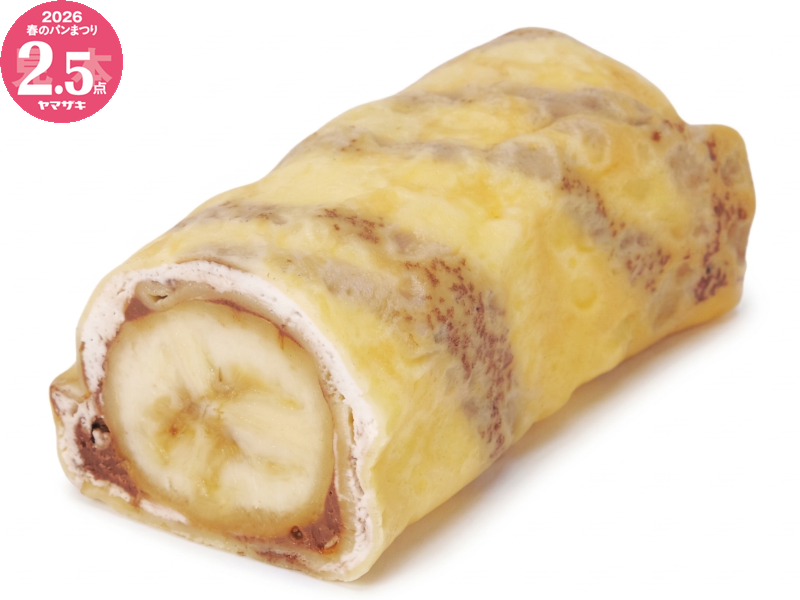 バナナまるごと1本にチョコソースを線掛けし、口どけのいいクレープ生地で包みました。クリームをミルククリームに変更しました。 ※「ヤマザキ春のパンまつり」対象商品です。