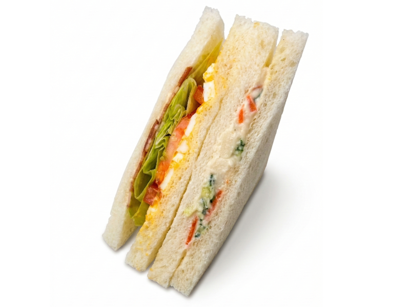 BLTとポテトサラダの2つを楽しめるサンドイッチ。BLTにはたまごサラダを合わせた食べ応えのあるサンドイッチです。