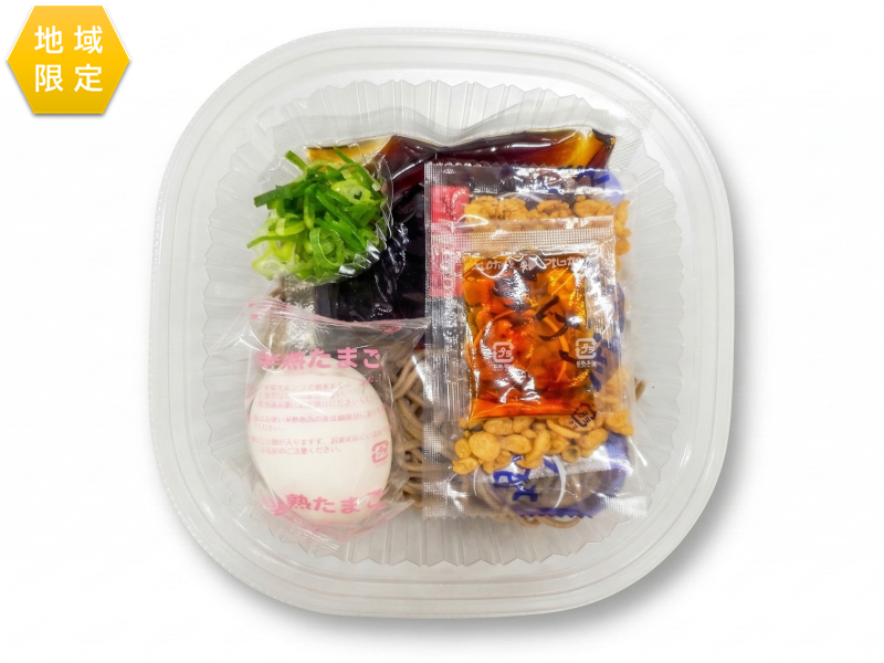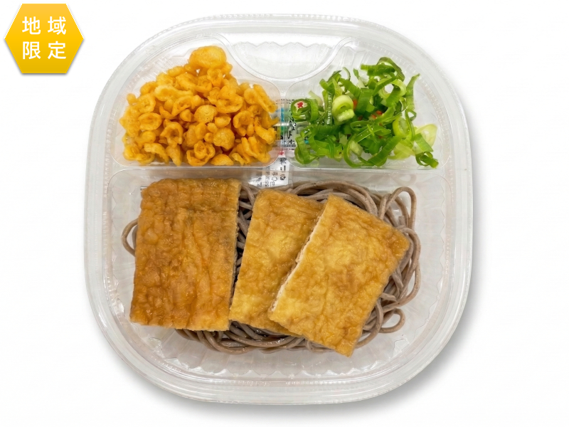 岐阜県で人気の冷したぬきそばを参考にしました。甘辛いお揚げとかつお節、昆布、椎茸の旨み3大成分の入った甘辛つゆです。 ※中京・関西・中四国の限定発売です。