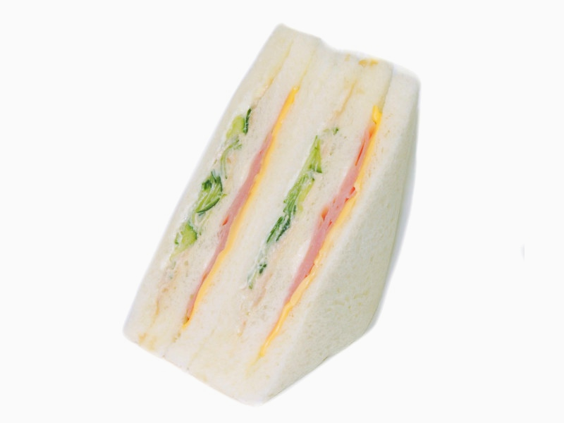 レタス、ハム、チーズに野菜・果物のコクと旨みのあるソースをあわせたサンドイッチです。