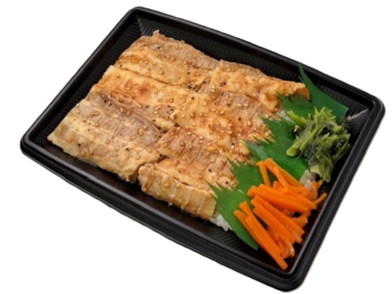 ご飯の上に甘い醤油タレで仕上げたチャーシューを敷いて、目玉焼をのせたボリュームたっぷりの弁当です。※秋田県・青森県の販売はありません。